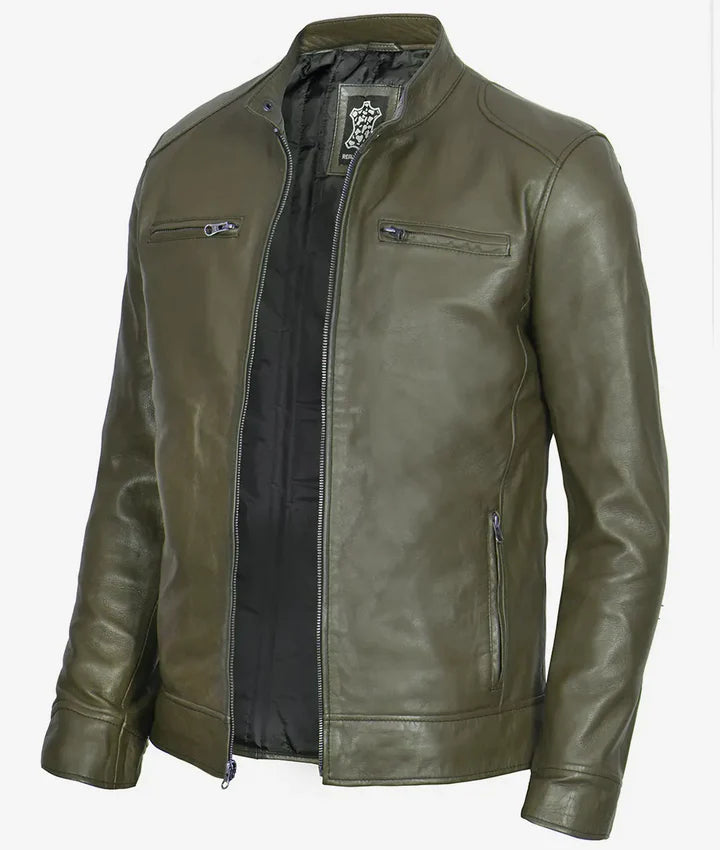 Rev up your wardrobe with our Mens Military Green Leather Jacket, a biker's dream. Crafted from premium lambskin leather, it blends classic elegance with a modern racing-inspired design. A perfect choice for motor enthusiasts and those looking for a bold style statement.
