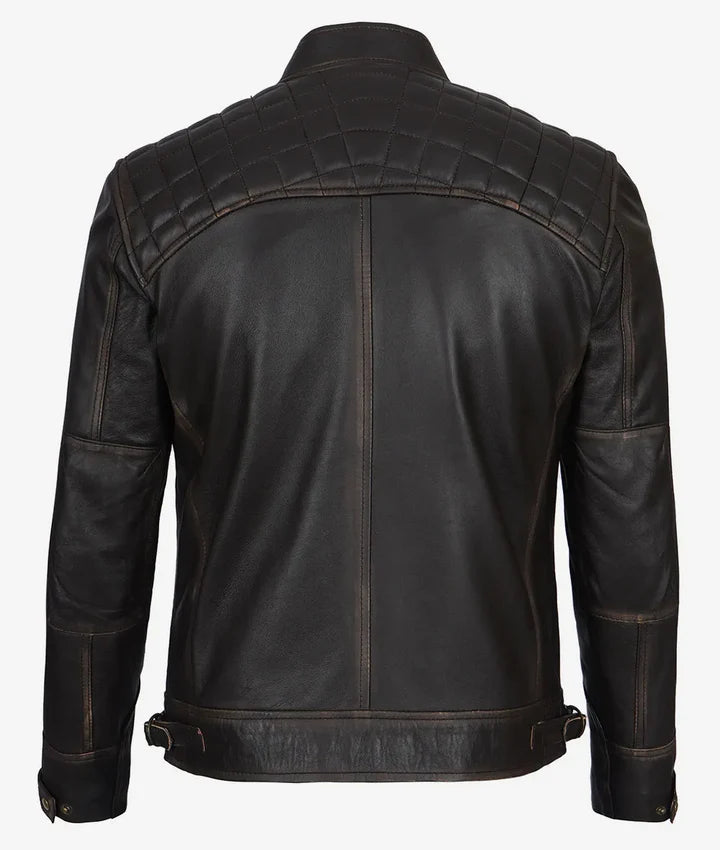 Men's Dark Brown Cafe Racer Leather Jacket - Quilted Shoulder JNM-0025