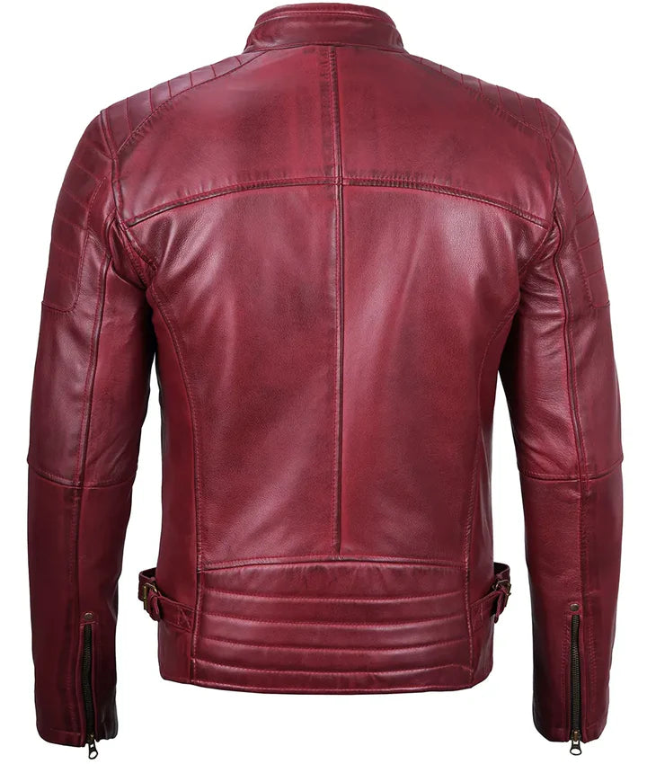 Men's Maroon Waxed Cafe Racer Leather Jacket LSM-0027