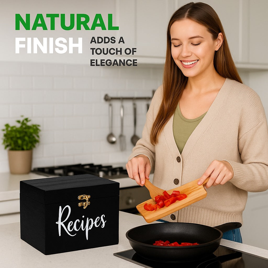 Get double the style and organization with the Recipe Box – now in a pack of 3 with 20% off! Expertly crafted from high-quality pine wood, these elegant black farmhouse-style boxes offer lasting durability and classic charm. Perfect for keeping your treasured recipes safe and organized, their compact, lightweight design brings both function and flair to any kitchen.