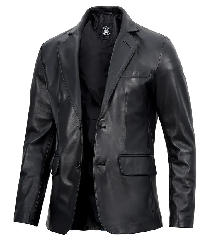 Get the classic noir look in our Mens Black Leather Blazer that offers maximum style and comfort while you transition from fall to winter season.
