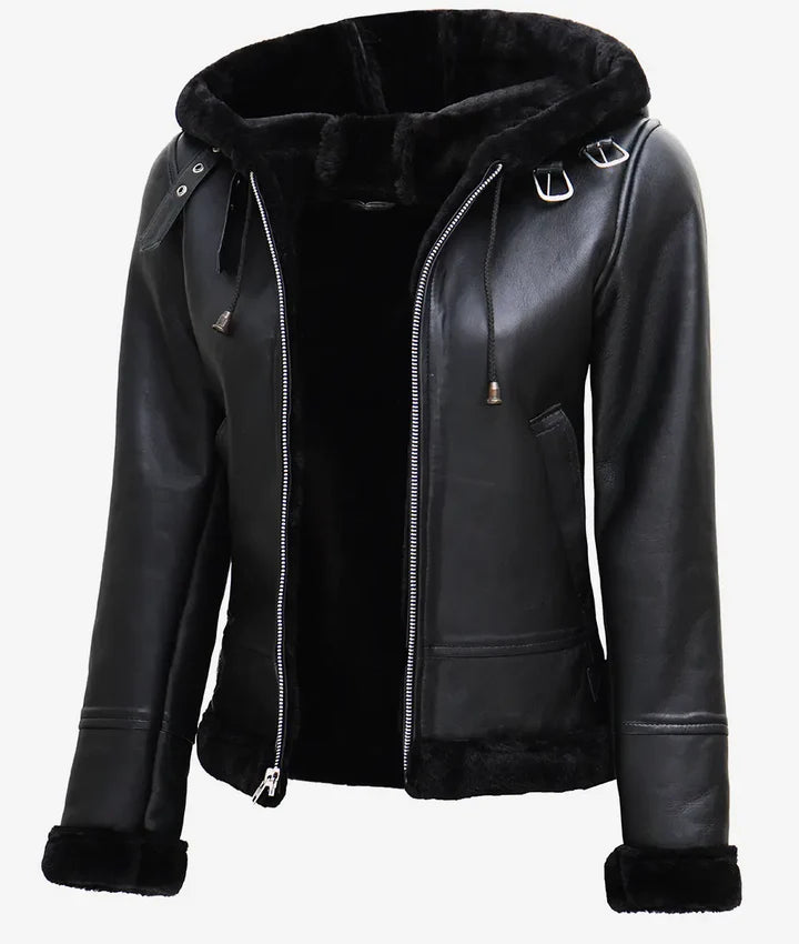 Grab this Leather Hooded Shearling Jacket and flaunt freely everywhere.