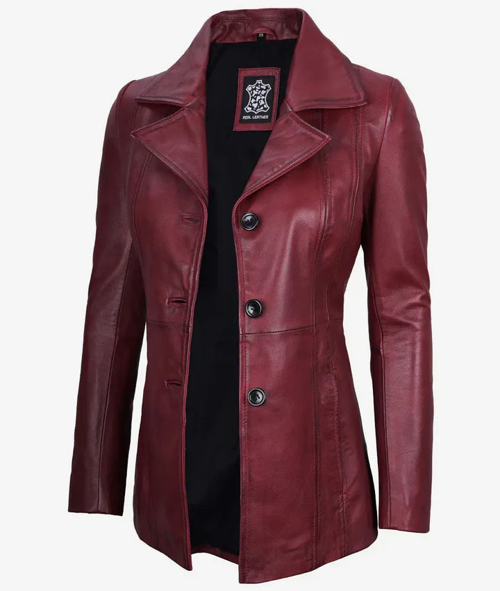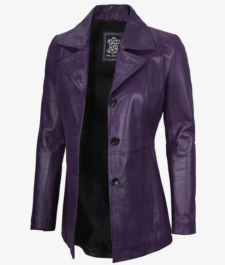 Opt for the Women's Three Button Purple Leather Blazer for a versatile and polished look. Crafted from...